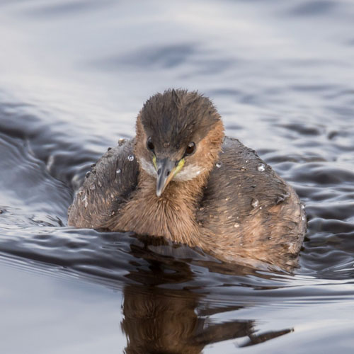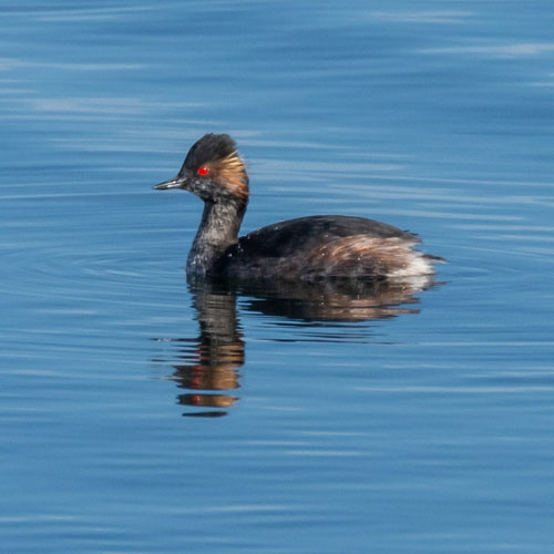 Ave acuática residente todo el año en la provincia, pero que tiene su pico en otoño. La población de esta especie de ave amenazada ha ido aumentando con los años y su presencia en la provincia se ha ido dispersando por distintos embalses y charcas de riego. Aun así, el mayor foco esta en la Balsa de Cadimo, donde se han llegado a contabilizar mas de 200 ejemplares a finales de Agosto. Es una especie fácil de distinguir por el abultado y colorido pico, el cuerpo casi sumergido y la cola larga y casi erguida.