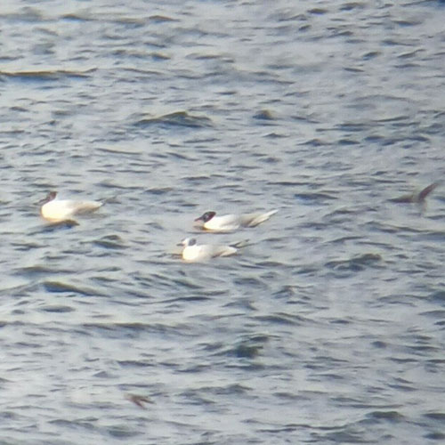 Ejemplares agrupados con gaviotas reidoras, sombrías y patiamarillas.